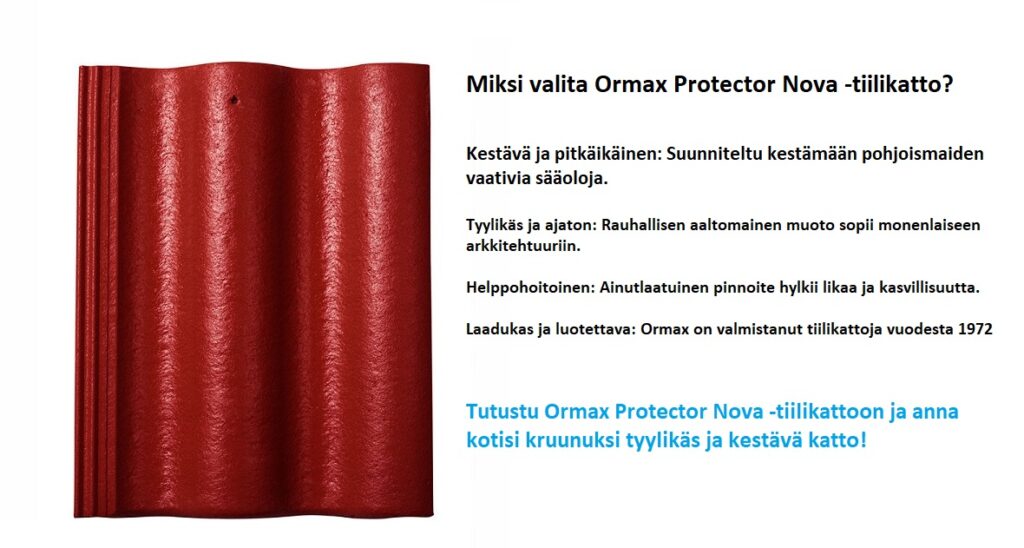 Ormax Protector Nova on klassinen läpivärjätty kaksiaaltoinen betonikattotiili. Protector Nova yhdistää kauniin, klassisen ilmeen ja pi...