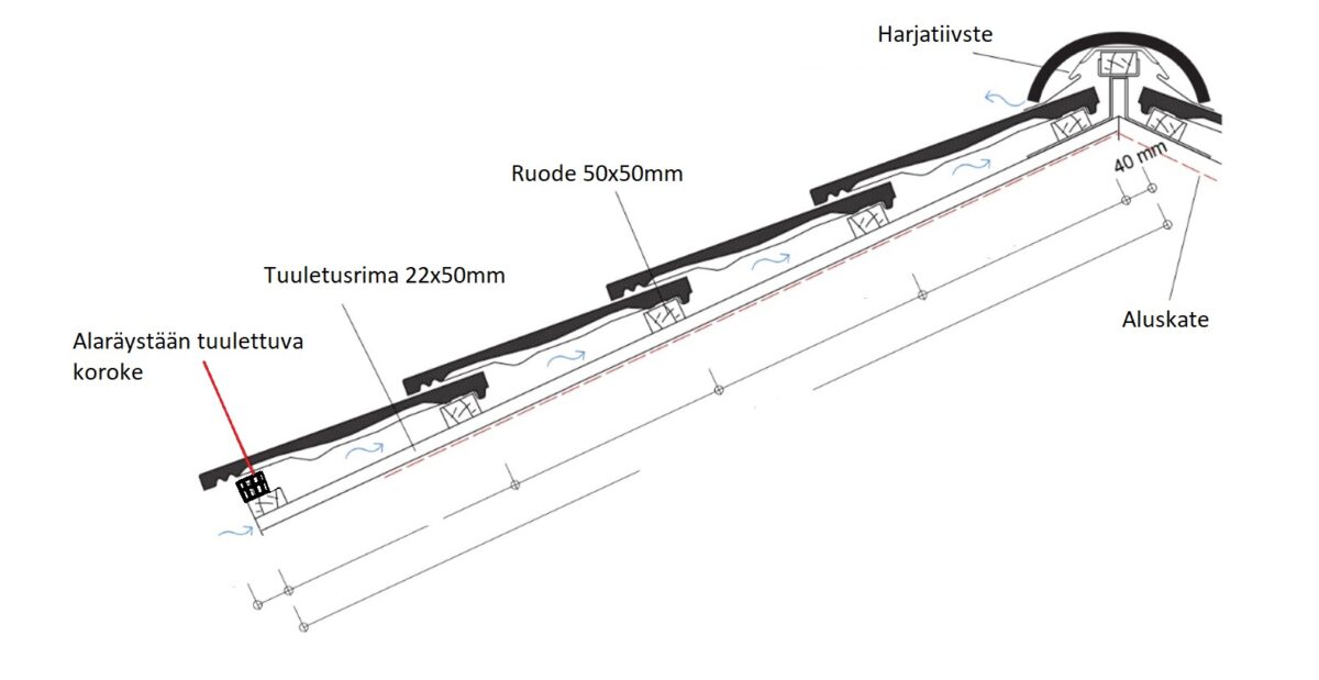 Osastot: Alaräystään tuulettuva koroke, Tiilikatto kiinnikkeet