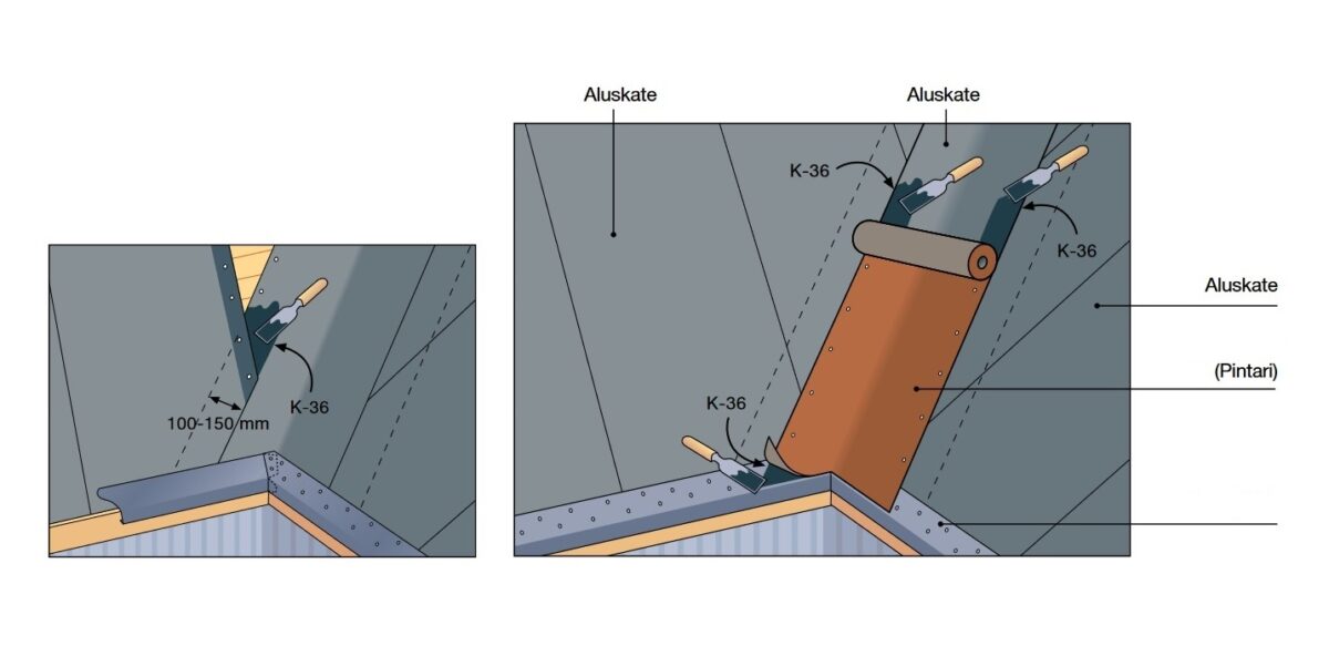 Säilytys huoneenlämpötilassa vähintään 1 vrk ennen käyttöä. Puhdista pinnat irtonaisesta aineesta, liasta ja rasvasta. Huokoiset ja pölyiset pinnat sivellään ensin bitumiliuoksella K-80. Levitä liimaa noin 1 mm paksu kerros (esim. 4×4 mm kampalastalla, 45 asteen kulmassa). Paina pinnat huolellisesti yhteen ilmasulkeumien välttämiseksi ja paina lujasti kiinni, kunnes liima pursuaa saumasta. Tasoita lopuksi purseet lastalla. Tarttuu hyvin myös kosteahkolle pinnalle.