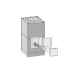 Nuohousluukun liitoselementti asennetaan savupiippuharkkojen muurauksen yhteydessä, ja varsinainen nuohousluukku asennetaan savupiipun lopullisen viimeistelyn aikana.