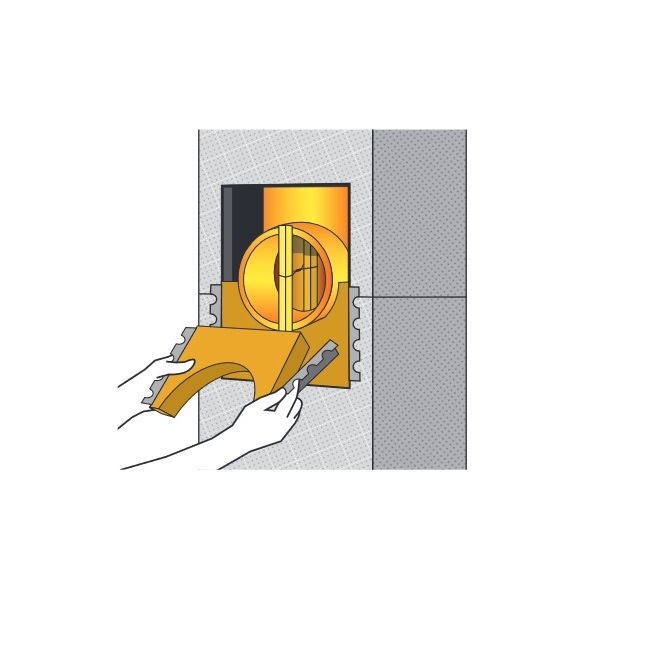 Rondo Plus -moduulisavupiipun pyöreän liitoselementin eriste asennetaan liitoselementin aukkoon ja kiinnitetään mukana toimitettavilla kiinnitysklipsillä.