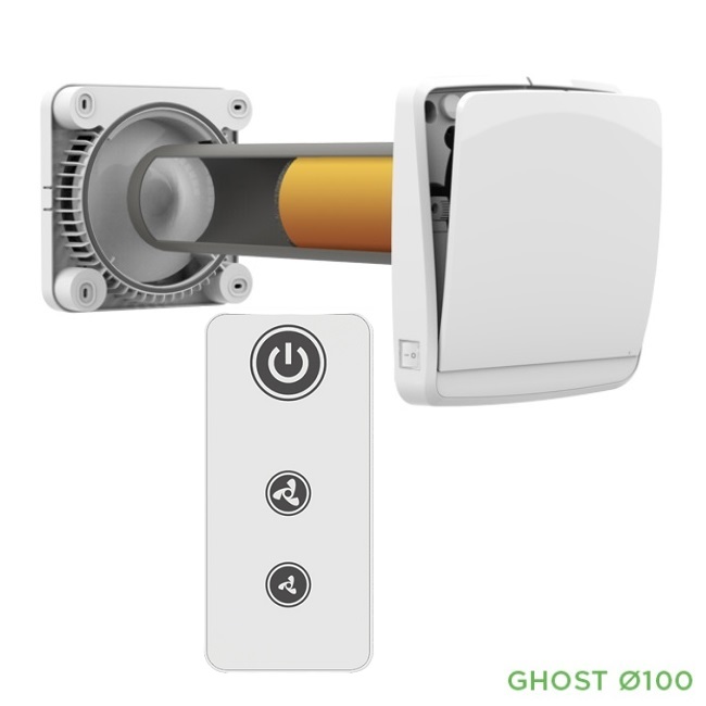 GHOST 100 BASE on seinään asennettava paikallinen ilmanvaihtolaite lämmöntalteenotolla (rekuperaattori). Laite sopii erityisesti kohteisiin, joissa ei ole keskitettyä ilmanvaihtoa tai joissa kanavointiin ei ole riittävästi tilaa.