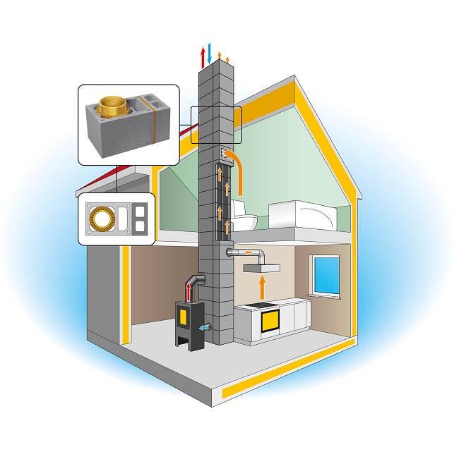Ilmanvaihtokanavallinen piippuharkko: 380 × 520 mm