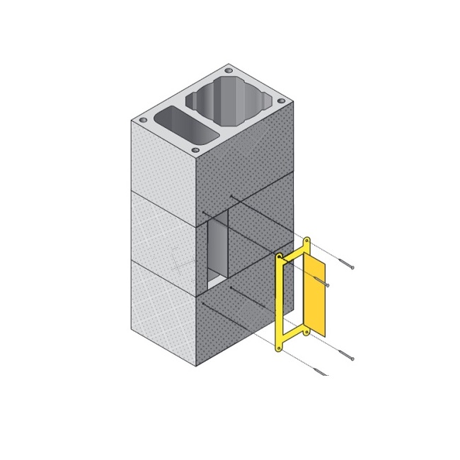 Asenna leikattu vaippaharkko ja sitä seuraava harkko savupiippuun yhdessä keraamisten sisäputkien ja eristeiden kanssa. Kun savupiippu on pystytetty, asenna ilmanvaihtohormin puhdistusluukku aukkoon ja kiinnitä se pakkauksen mukana toimitettavilla nauloilla.