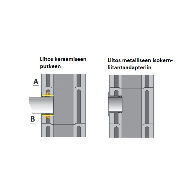Tiivistä liitosputken ja liitoselementin sisääntuloaukon väli tulenkestävällä tiivistysnarulla. Tarvittaessa voidaan lisäksi käyttää sopivaa tulenkestävää tiivistysmassaa.