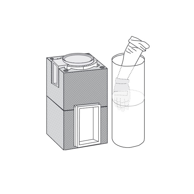 Nuohousluukun liitoselementti asennetaan savupiippuharkkojen muurauksen yhteydessä, ja varsinainen nuohousluukku asennetaan savupiipun lopullisen viimeistelyn aikana.