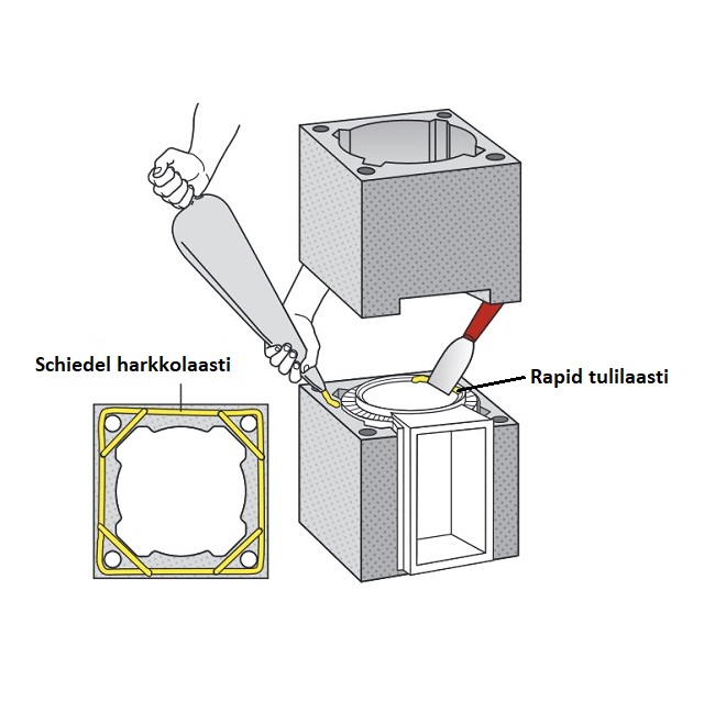Kostuta ylempi liitosviiste ja levitä siihen tasaisesti koko ympärysmitan alueelle tulenkestävää keraamista liimalaastia käyttäen kapeaa lastaa tai asennuspussia.