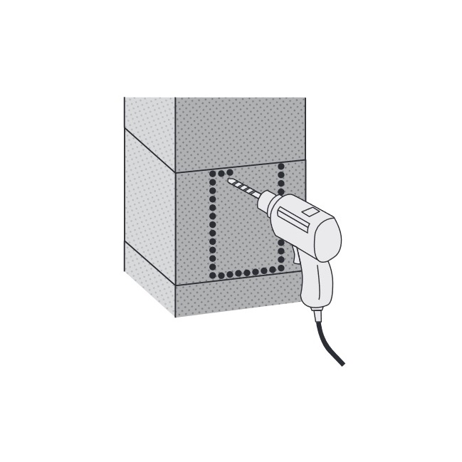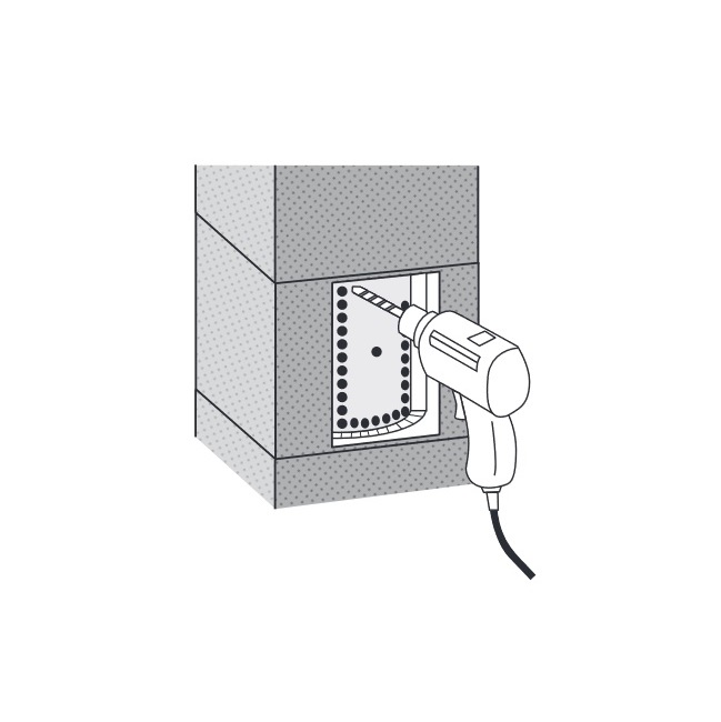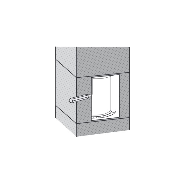 Suorakaiteen muotoisen liitoselementin jatko-osaa asennettaessa kostuta jälkiasennuselementin liitosreuna sienellä. Levitä sen jälkeen koko liitosreunan pituudelle keraamista tulenkestävää FugenKit SPK -liimalaastia ja asenna elementti leikattuun aukkoon.