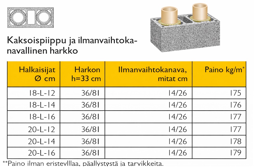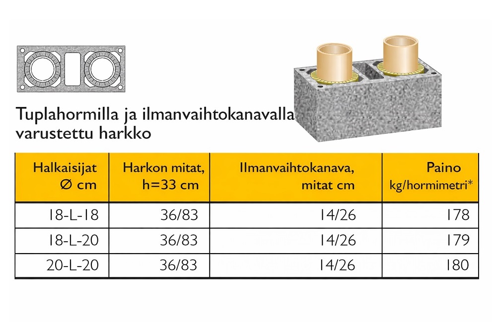 Savuhormin halkaisija valitaan ja lasketaan liitettävän tulisijan lämmitystehon, käytettävän polttoaineen sekä hormin korkeuden perusteella. Kuoriharkkojen asennuksessa käytetään joko Schiedelin liimalaastia tai muurauslaastia M100/600. Isokern-liimalaastia käyttämällä on mahdollista muurata piippu valmiiksi yhden työpäivän aikana.