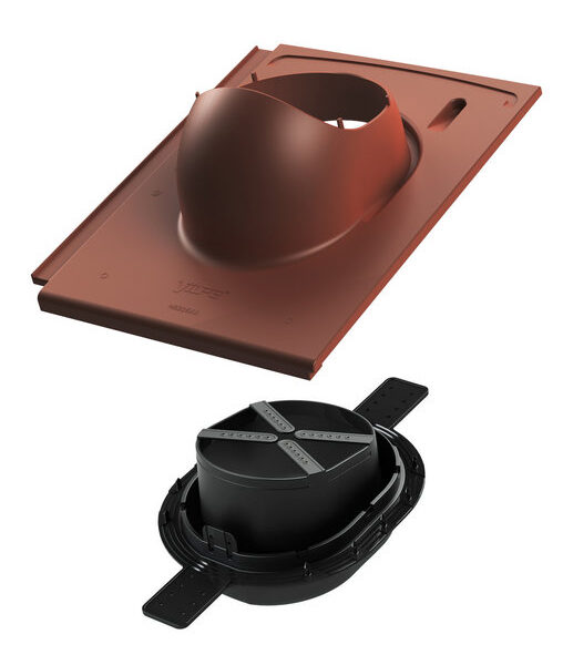 Käyttökohteet: Yleisimmät betonitiilikatteet. Korvaa yhden kaksikouruisen tiilen, jonka leveys 330 mm ja korkeus 27-40 mm. Käytetään VILPE® P-sarjan Ø 75 – 160 mm:n tuuletus- ja poistoputkien sekä huippuimureiden kanssa.