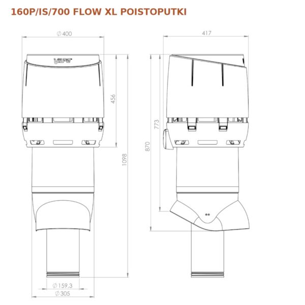 Vilpe 160P/IS/700 FLOW XL poistoputki ruskea